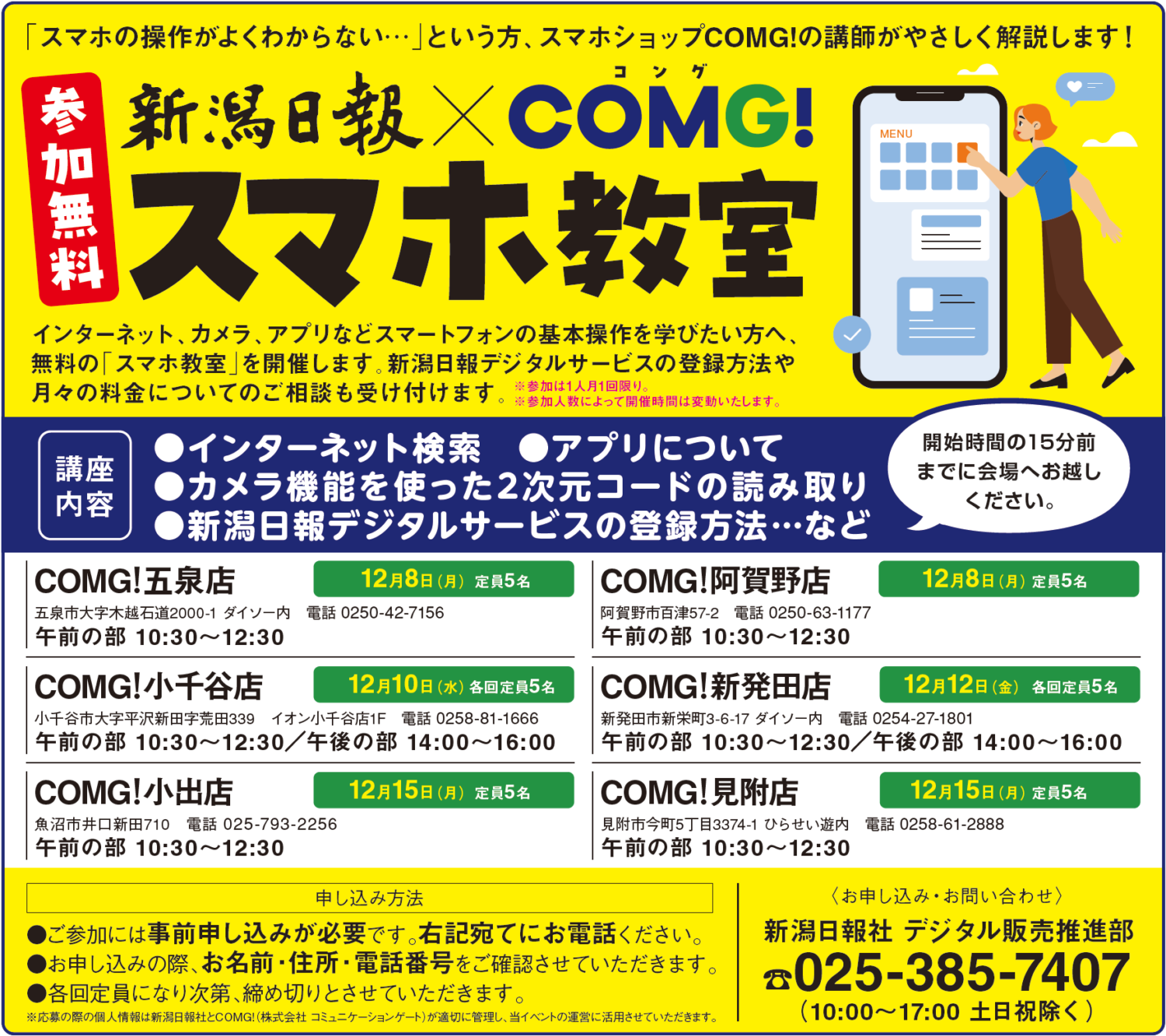 12月12日(金)新発田店でスマホ教室開催!(参加無料)