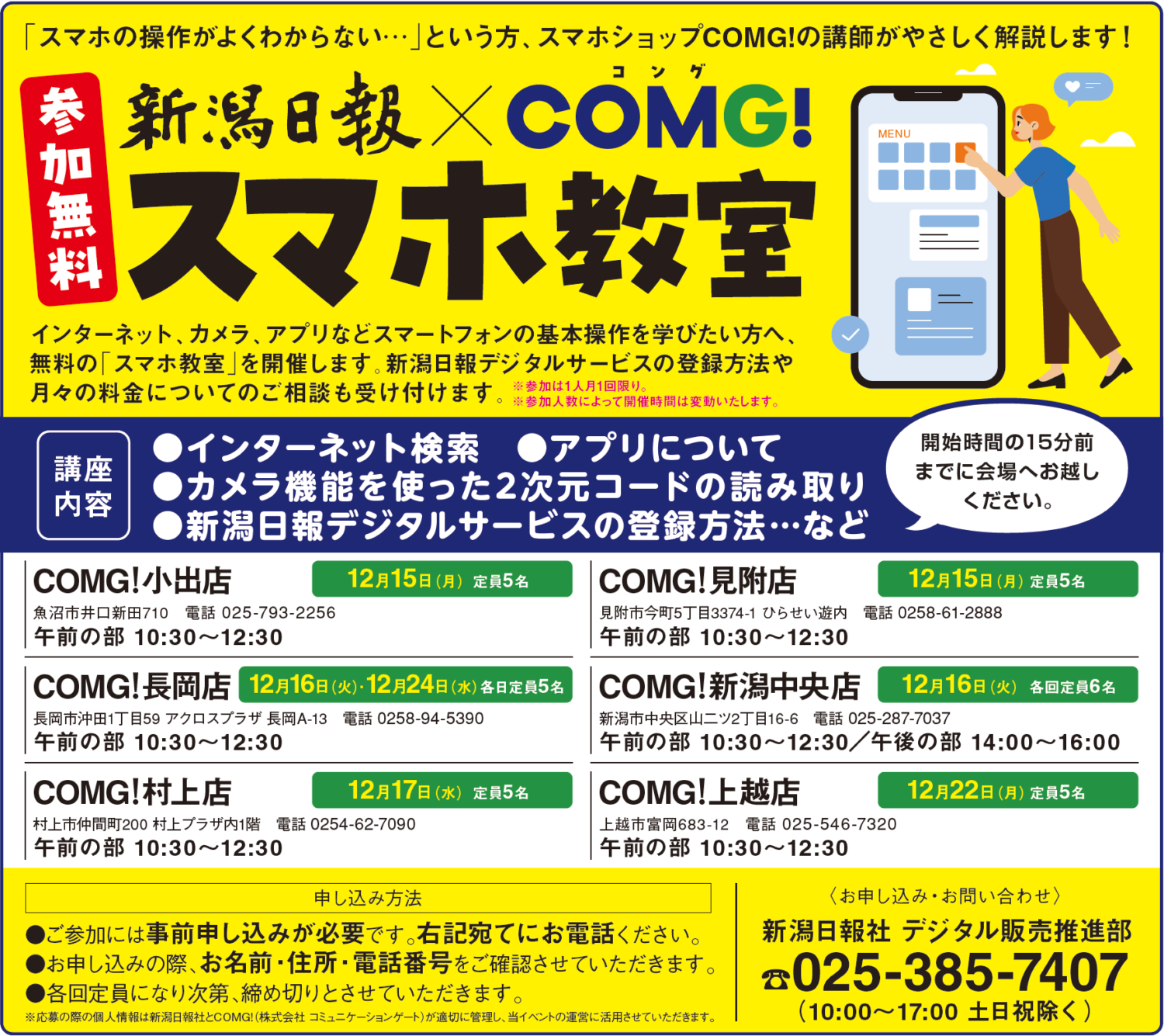 12月16日(火)長岡店でスマホ教室開催!(参加無料)