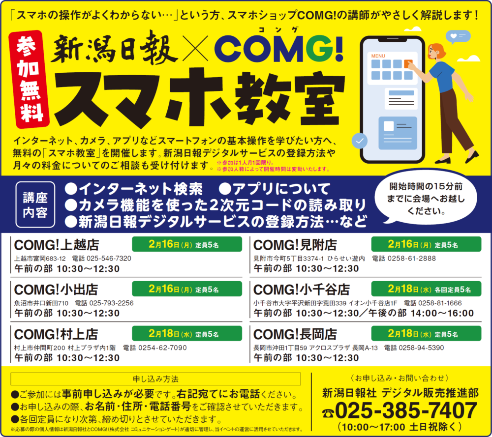 2月18日(水)村上店でスマホ教室開催!(参加無料)