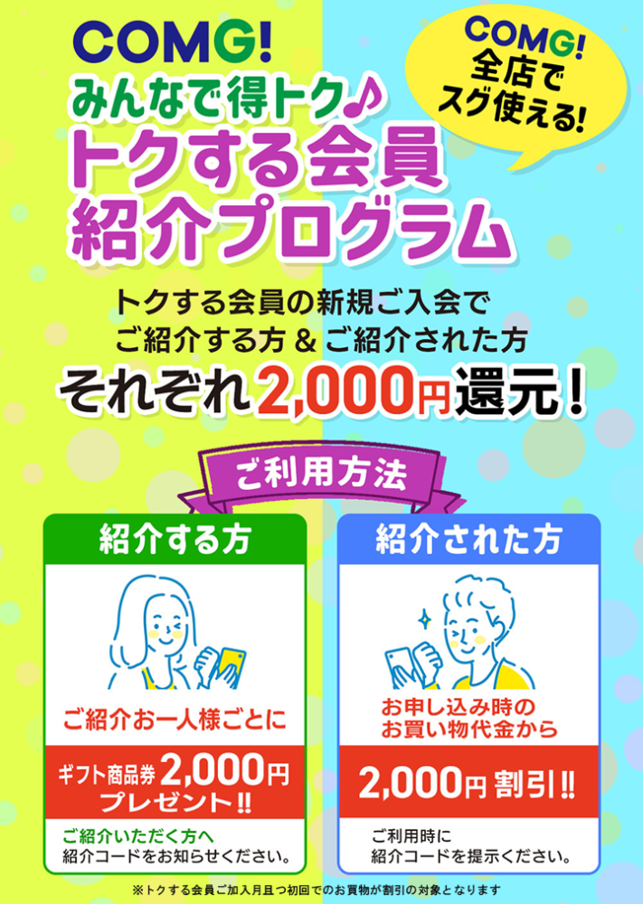 「トクする会員紹介プログラム♪」紹介した方も紹介された方もおトク!
